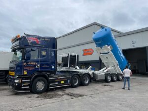 The VAKO horizontal-to-vertical trailers are custom-built solutions designed to transport silos or filter units horizontally and then safely position them upright on site. Like our standard 20″ and 40″ vertical loaders, these trailers deliver proven ease of operation and long-lasting durability. They are ideal for placing concrete silos on construction sites or positioning carbon filter units wherever water or air purification is required. Each trailer is tailored to the specific dimensions and weight requirements of the cargo, ensuring seamless handling and maximum safety. The robust hydraulic system and thoughtfully engineered design allow precise, controlled lifting and placement. With a VAKO trailer, operators gain confidence, efficiency, and reliability for every heavy lifting task.